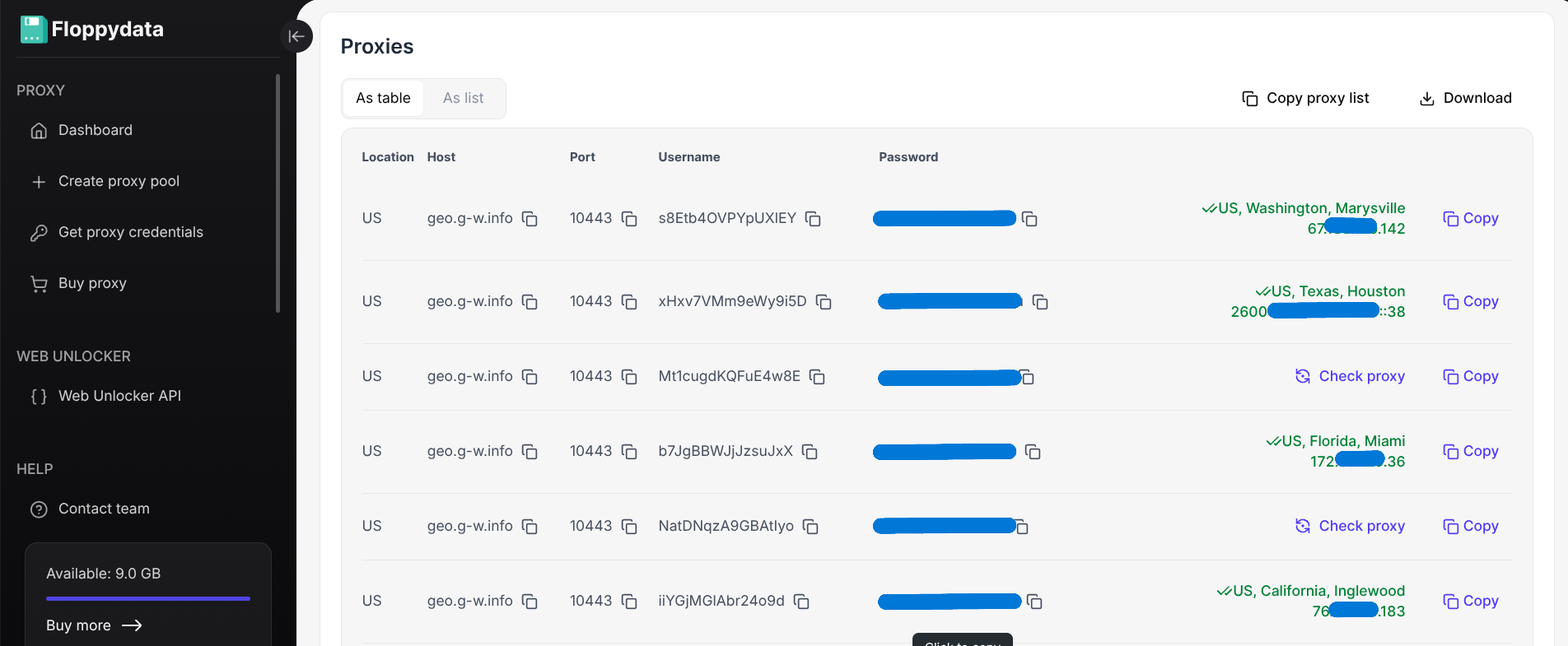 - If the proxy is working fine, the Location column will show its location.
