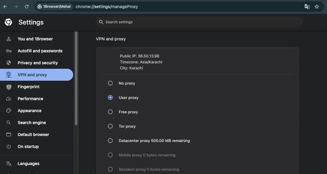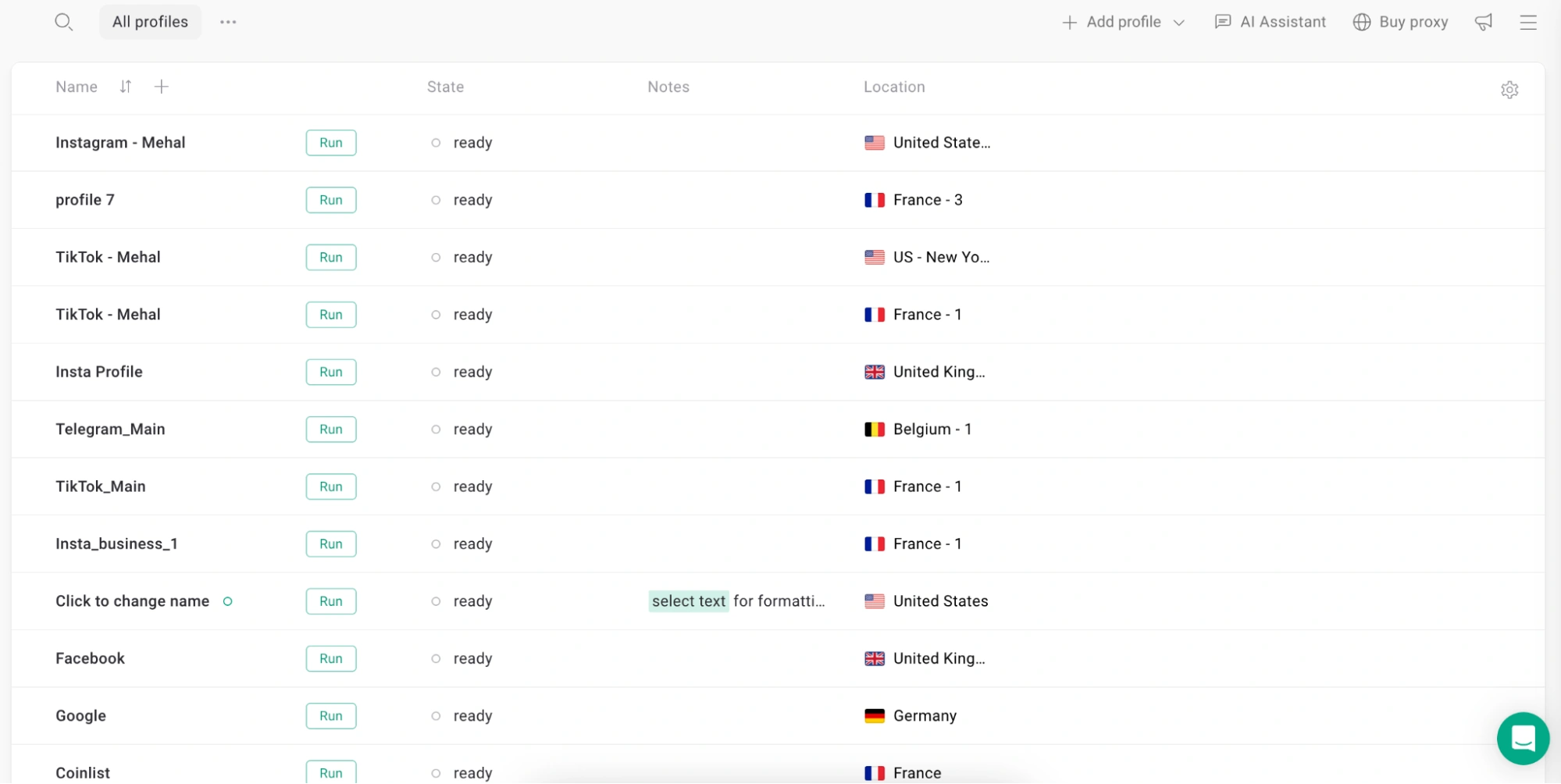 Once you’ve made a profile, you assign it a proxy, and that’s it. The browser handles fingerprint masking by itself.